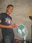 | June 28 | Today was the third and final day of the solar workshops.The participants connected the components in order to connect the system. Ultimately, they were able to get the system to run and power a fan, which was the highlight for Junior, the youngest participant in the workshop. During this hands-on workshop the participants began questioning each other on what each component did and how to wire it and everyone was pitching in to answer it.The system hd to be taken down and put into Enrique's house as the Botica did not have doors at that time. | ![]() |