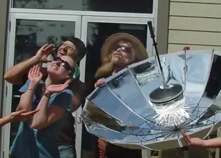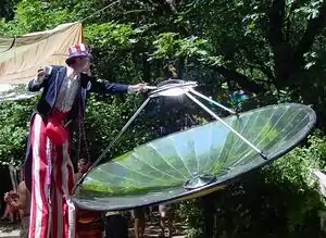 - The 8' diameter satellite dish solar cooker/popcorn popper