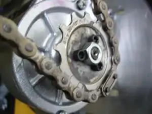 Generator mounted to bottom plate. (Photo by Luke Halonen) - Chain in generator.
