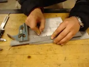 Drafting a generator plate. (Photo by Luke Halonen) - Mount flywheel to gear side of crank at the bottom bracket using spacers to prevent interference with chain.