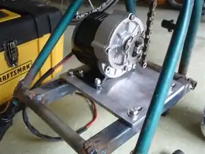 - Using square bar stock and U-bolts, mount a front wheel hub to bar stock attach it the to upright front forks. quick