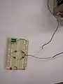 A Windbelt consists of a piece of thin, non-elastic Mylar tape stretched between two points on a base. At one end of the base, magnets are placed on either side of the tape. These magnets rest between two copper coils attached to the base. Windbelts generate electricity as the wind moves the tape or belt up and down creating Aeroelastic flutter. This flutter causes the two magnets to oscillate, which in turn disrupts the magnetic field of the copper coils creating a current.