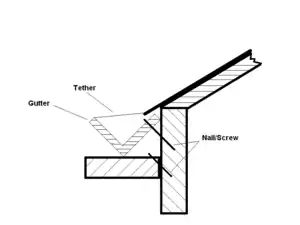 V shaped gutter with tether | Instructions for fabrication of the V shaped gutter can be found here Rainwater harvesting. This V shape can also be constructed of plywood fastened together at the seam. The tethers should be made of strong wire and spaced periodically down the roof. |