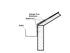 Gutter with extension under shingles | The extension will provide a strong fastening point for the gutter. The extension feature of this design could be combined with other designs to provide superior strength. |