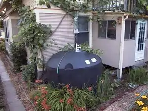 Though its roots are thousands of years old, rainwater harvesting is beginning to be used again in the United States. Harvesting rainwater involves the practice of collecting rain from roofs and other surfaces and storing it in cisterns[9] for later use. In residential and small commercial settings, it can be an economical and environmentally sound option to traditional water supply systems. Constructing a rainwater harvesting system can be a simple or complex endeavor. Water can be collected in a barrel directly from a roof to be used for keeping lawns green, or it can be passed through a series of filters to be used for drinking water.[10]
