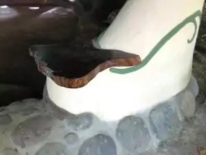 This is a section made with a technique called chorizo (which means sausage in spanish). It involves wrapping straw around a piece of bamboo rolled in a clay slip and plastering over the them. |