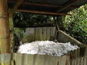 Toilet paper can not be put into the biodigester, but it can be composted. This is a compost pile for the toilet paper used through regular biodigester toilet use. |