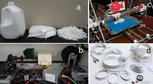 - Mohammed, M.I., Wilson, D., Gomez-Kervin, E., Rosson, L. and Long, J., 2018, November. EcoPrinting: Investigation of Solar Powered Plastic Recycling and Additive Manufacturing for Enhanced Waste Management and Sustainable Manufacturing. In 2018 IEEE Conference on Technologies for Sustainability (SusTech) (pp. 1-6). IEEE. https://ieeexplore.ieee.org/abstract/document/8671370
