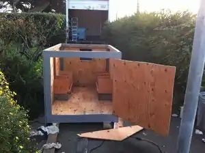 Caption - Cut desired door out of back wall. After, mach sure to use stronge higes for door.