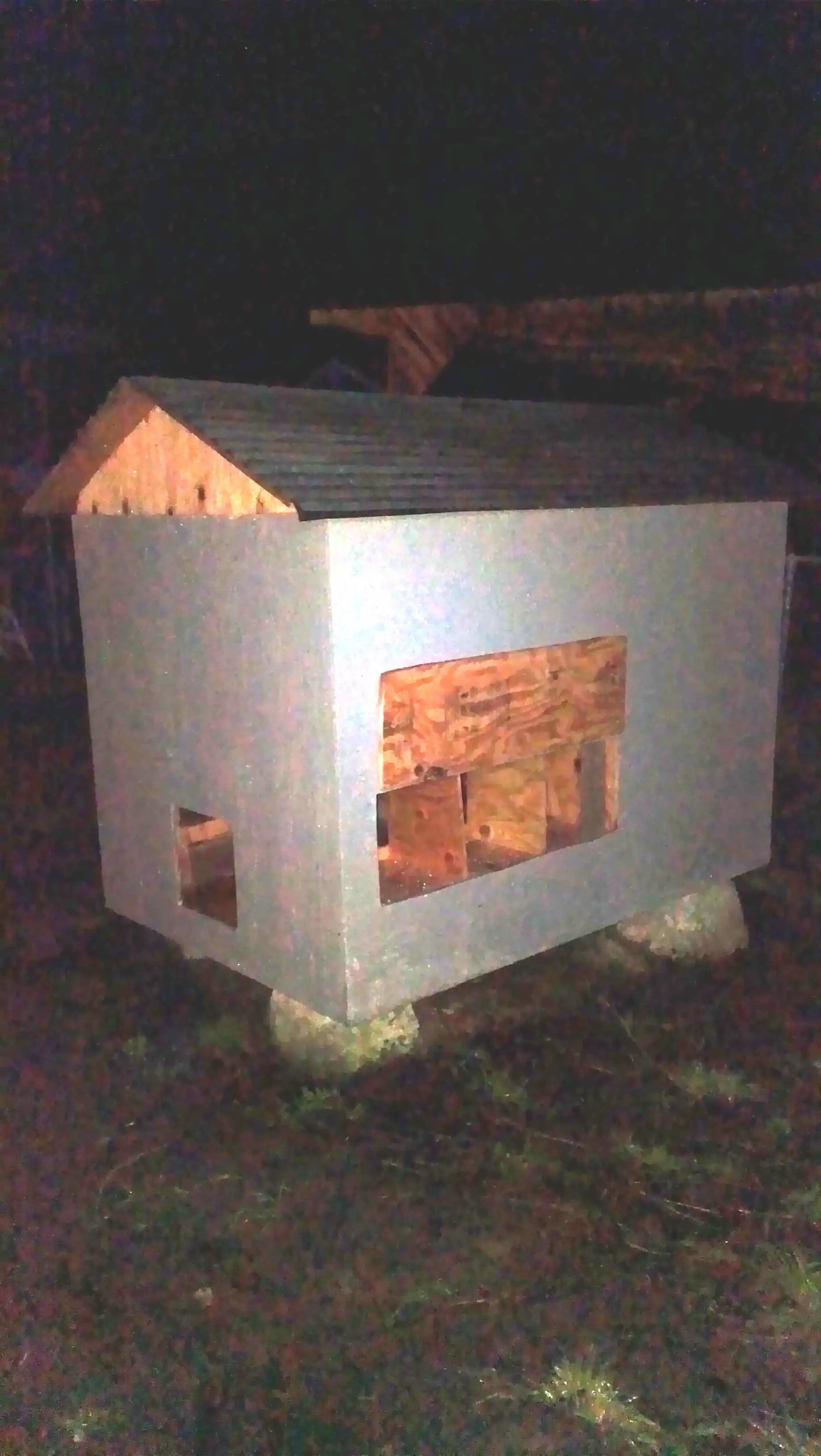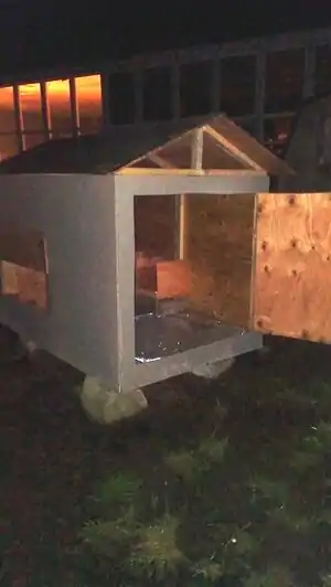 The roof is a simple gable style design, measuring at a foot tall, it’s made out of the same material as the coop. To make the coop stand up against weather, roofing tile is laid along the top of the rood. This also helps with the insulation.