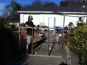 Caption - Building the walls. With desired measurements, cut off your wall panels from the ½" playwood and secure to the frame.