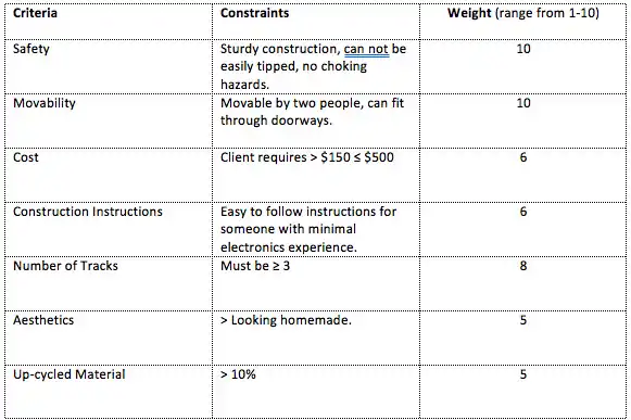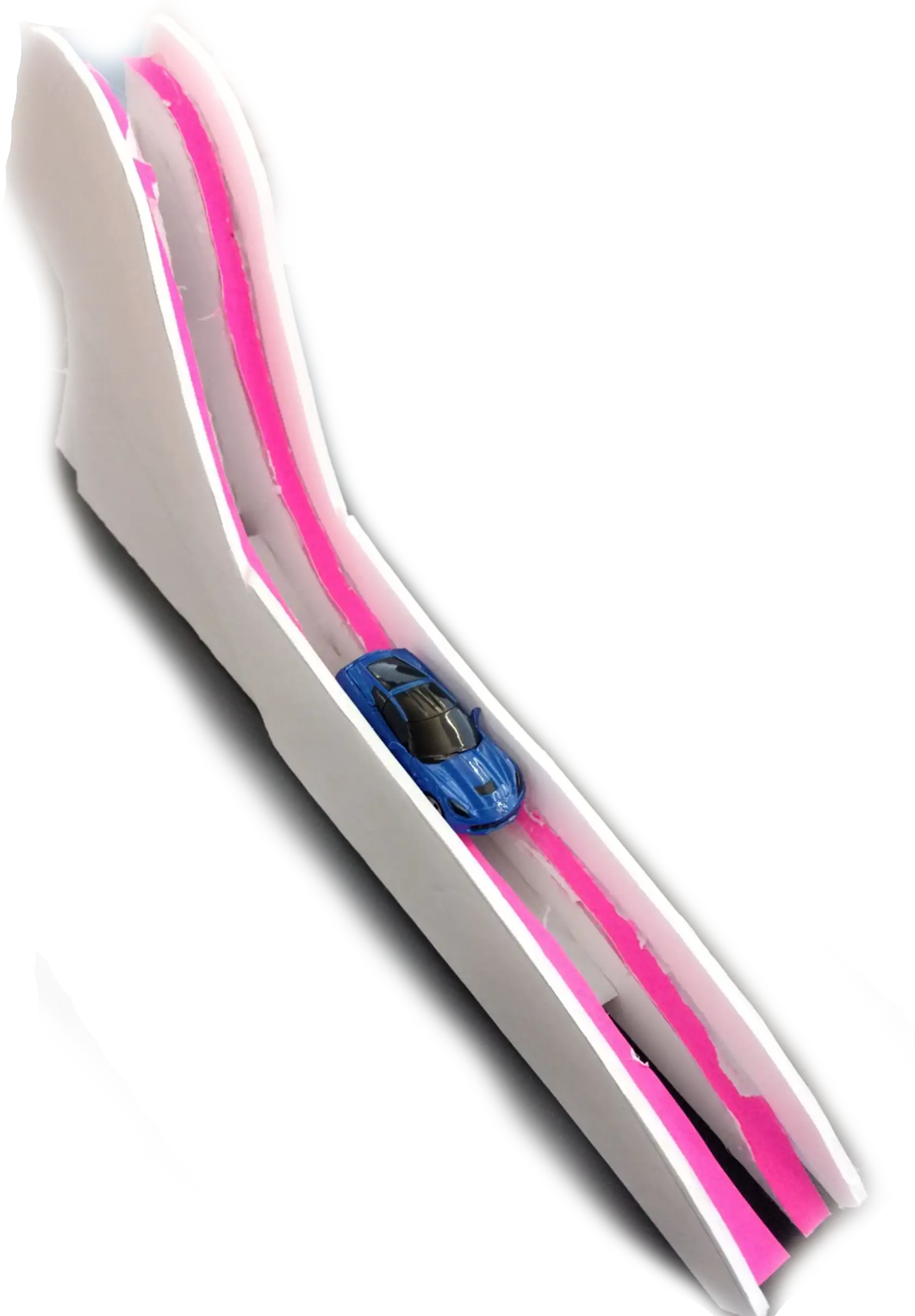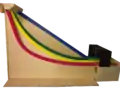 The initial track prototype, shown to the right, proved to be successful for use with balls and cars and was incorporated into the final design. The heights of the walls were slightly too tall in the prototype and were scaled down in the final design to allow balls to roll down the center gap without touching the walls.