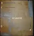 -(2) Two feet by two feet. These pieces are made of half inch thick plywood.