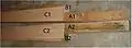 -(2) Half inch by six inches by four feet. These pieces are made of half inch thick plywood.
