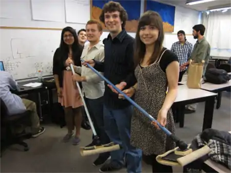 SCRAP Humboldt[2] is a creative reuse center in Humboldt County, California. SCRAP Humboldt aims to take materials that can still be used to create new products. SCRAP teamed up with Humboldt State University students enrolled in Engr 215 Introduction to Design [3]to promote sustainable living by challenging teams of to create projects that were aimed towards diverting usable materials from the waste stream. One of the materials in particular was carpet samples. From this project assignment the Carpet Sample Dry Mop was created.