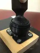 Our final product is a carpet sample dry mop. It consists of a wooden handle that is attached to our 3D printed ball and socket joint with a pin. This pin firmly connects the handle and the joint. The joint is fixed to a small wooden block with four small screws. The block is stapled to a piece of industrial carpet. A softer wool carpet sample is attached to the bottom of the mop with velcro. The velcro was superglued to the top and bottom edge of the industrial and wool carpet sample. This allowed for quick removal of the carpet head for cleaning.