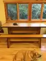 The Tinker Desk is an up-cycled desk and workbench that is designed to be used as a workspace for up to six users simultaneously, while maintaining a low-cost model that is easy to reproduce. The desk is held by two vertical legs that are braced by a central piece, ensuring that the base is sturdy, while also maintaining ample room for leg movement. The benches are designed to be roll-resistant, while the stabilizing brace ensures the desk is stable for moderate-to-heavy use. Every surface of the desk has been sanded to promote splintering-free edges and prevent fabrics and other materials from getting caught and splintering the wood. The legs of the table and benches also have fitted rubber feet to sit on. This will prevent wear on the feet of the workbench and reduce scratching on the floor of the workspace. The design is handicap accessible and was measured to a height that would fit directly underneath the windowsills of the room of its intended use.