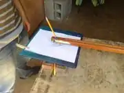 1. Place writing utensil