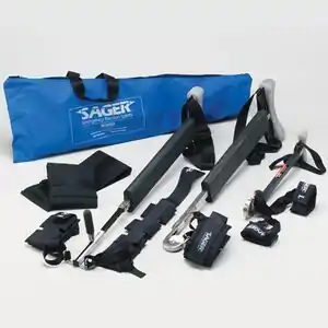 Sager splints provide unipolar traction. One steel rod sits between a patient's legs and applies traction from the ankle with counter pressure directed onto the ischial tuberosity. Sager splint sits between the leg against the ischial tuberosity, so it is more effective for proximal femur fracture than hare splint. Also, one Sager splint can be used for a bilateral femur fracture. However, there is an increased risk of damage to the genitalia as the splint can move from the initial ischial tuberosity placement during transport. Sager traction splint can measure the actual traction applied on the gauge. The optimal traction is roughly 10% to 15% of a patient's body weight. Only go to 30 lbs for bilateral fractures.