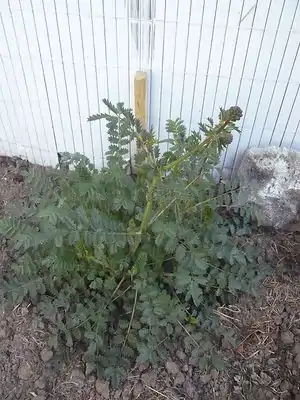 Salad burnet (Sanguisorba minor) or (Poterium sanguisorba) is a perennial herb that has an appearance similar to a fern. If care is not taken to keep this herb in check (it seeds freely), it can escape the herb garden and become weed-like in other areas of the garden.[1] The salad burnet plant is frost, cold and drought tolerant, and is often found growing well in disturbed soils, such as along roadsides.[2]