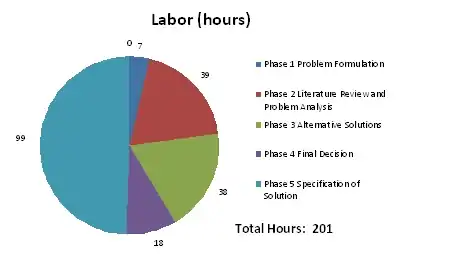 The following chart shows the amount of time used for the duration of the project. It is split into percentages and also displays the total time taken to complete.