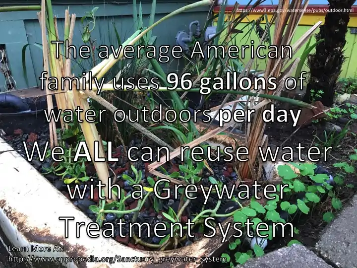 The objective of this project was to reduce the amount of city water that the Sanctuary uses outdoors. Our system filters the kitchen sink water from the neighboring house allowing the Sanctuary to use recycled water for outdoor use. The recycled water that will be coming from our system will be primarily used for irrigating the sanctuary's garden.