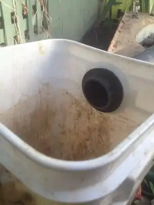 - PIPING INTO GREASE TRAP: First, cut a hole 2" below the rim of the bucket. It should match the size of the pipe coming from the house(greywater input).