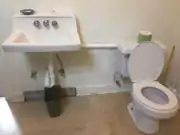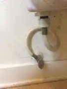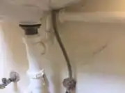 Figure 1 shows what the restroom looked like before the remodeling process began. The toilet to sink greywater system shown in figure 2 was designed to save the amount of water used when washing your hands after using the restroom. The design uses polyvinyl chloride (PVC) piping, shown in figure 2 and figure 3, to reroute the water's drainage onto the overflow tube so that the used soapy water flows directly into the toilet bowl. The design works by attaching the toilet tank's overflow fill tube shown in figure 4 with the sink's hot water supply line using vinyl tubing shown in figure 5. The sink's water runs approximately 40 seconds when the toilet is flushed giving double the amount of time than the recommended 20 seconds according to the Centers for Disease Control and Prevention (CDC). What makes this unique to the standard toilet to sink combinations is that the sink and toilet are placed like any ordinary bathroom would have them rather than replacing the top of the tank with a sink.