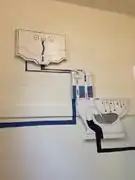 After the hot water valve was permanently sealed in the on position and the murals and signs were implemented people were liking the design. Initially, the pipes from the toilet to the sink were distracting for the user. A shelf was implemented to hide the pipes and that also left people liking the design for what it is. Hiding the pipes proved to be the better decision as more people did not feel as disgusted when washing their hands. Also with the mural displaying how clean water coming from the Mad River is supplying the clean hand-washing water, people felt more inclined to wash their hands with the installed system.
