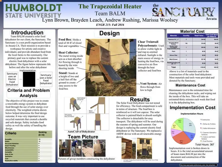 Team BALM built a Solar Food Dehydrator for the Sanctuary, a non-profit organization located in Arcata California.