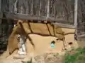 This is the Green Dragon, the biggest cobb construction in the Ecovillage. We dug up the earth, sifted out our own clay, mixed it all up and slapped it on.