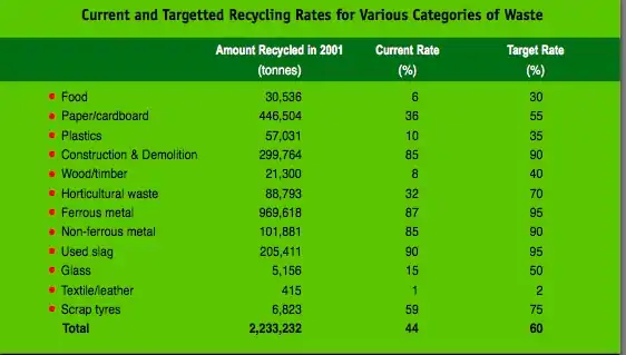 SGP details that because of their limited land availability they are pursuing a "zero landfill" objective in the longer term, with their target being 60 % recycling by 2012. The Waste Minimization and Recycling Association has been started also as a private sector initiative for assistance with industry.
