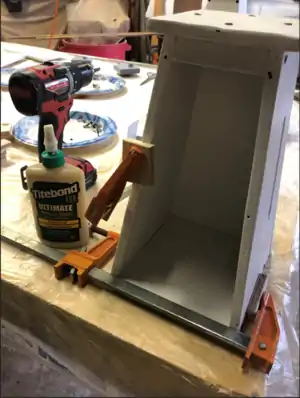 Letting the wooden components dry - Reassemble components with the addition of wood glue at the joints