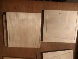 Laying out wooden components for coating of paint - Coat components in protective, water-resistant coating of paint