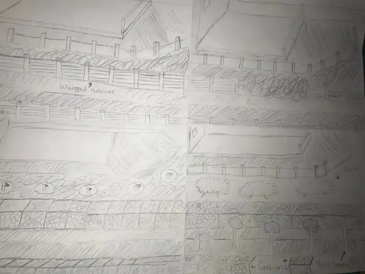 Story board for the deconstruction of the retaining wall and installation of gabion wall.