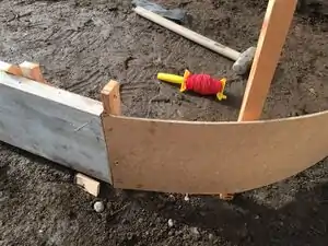 Cheat one foot - The outer masonite sheet was curved one foot away by the spacers from the inner curve and drilled into the stakes.