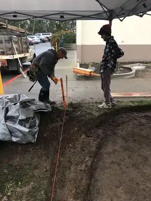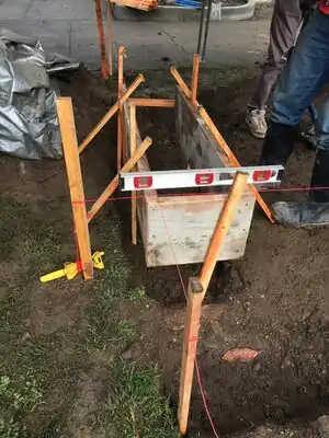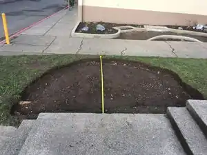 Digging - We measured out the height and width of the the sundial and created a square with string and stakes.