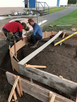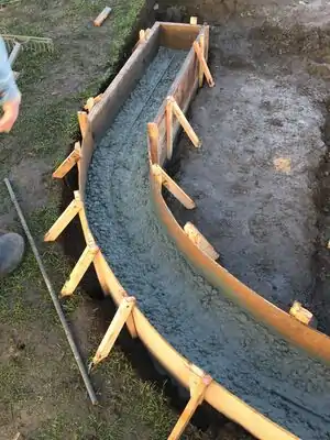 - When the concrete was filled 4 inches, rebar was inserted to each curve.