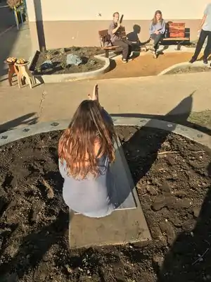 The space which was chosen as the location for the development of the Human Sundial at Six Rivers school is centered in a high traffic area on campus. Surrounding an underutilized space of lawn are major drop off points for students from buses, as well as the school wood shop and design lab. Through creating a more dynamic campus environment, this design project intended to change the way students interact with their school, and promote curiosity as they see it during passing periods and lunch breaks. Through reforming the space, it could create additional seating and spaces for students to enjoy, play, and create.