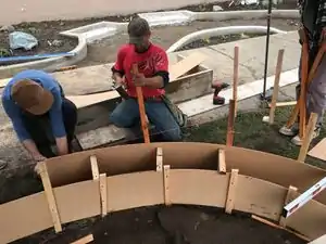 - This spacer device was created in order to have a one foot width while bending the masonite sheets.