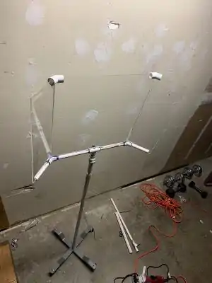 Another problem we ran into, was too much play from the center mount over the top of the neck. The long 18" panels had a tendency to topple over from their weight. To mitigate this, we needed to extend the length of PVC that was being inserted over the neck of the stand. We found that 3/4" was the correct size for this, and introduced a 6" piece that went around the neck, taking all of the play out of the center mount.