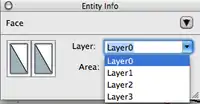 Note: SketchUp has a sort of hierarchy in the allocation of the materials: the most specific description always comes up higher in the list. The coloring of a surface is more specific than the coloring of a whole group, and thus gets priority.