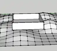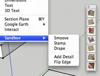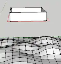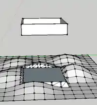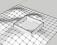- Then you can start to adjust the starting grid using the SMOOVE-tool. Do double-click first to work within the group (grid) ! With the SMOOVE-tool you can create hills and pits. You may enter the exact height/depth, you can also enter the radius if you click on the SMOOVE-tool.