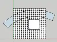 The road is now projected unto the terrain. This is important for when you begin to apply your textures. By opening up (by double-clicking), the terrain (= a group) each surface of the terrain can given a different color.