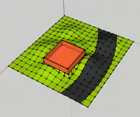Items that do not require a flat surface (eg a road which follows the contours of the landscape, ...) can be lain "over" the terrain, rather than stamped into it. For this, we use the DRAPE-tool, and we follow these steps: