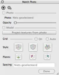 By clicking on the blue axis and dragging it, we scale the picture (note the figurine to set the scale properly). By clicking the "Done"-button in the MATCH PHOTO-window, you can confirm that you have set all the parameters, and that you wish to begin the modeling.