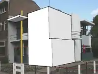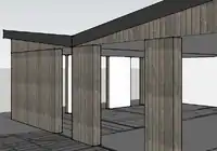 Because we applied the same material to all surfaces within the group, as we clicked on this group, a small problem occured: even the ceiling and all interior walls are now foreseen of a wood texture. This can be easily fixed by opening up the groups (double-click) and by then applying a white color to the interior walls (PAINT BUCKET-tool).