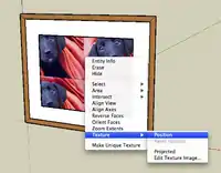 2. When we right-click on the picture, we select Texture -> Position in the context menu. A number of pins now appear on the picture that will allow us to edit the picture. Through the red pin, we can move the picture, through the green one we can rotate and scale it, ...