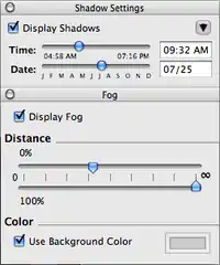 Through the View menu you can switch shadow and/or fog on/off at your model to make your models appearance more realistical.