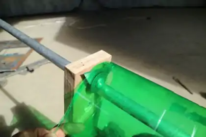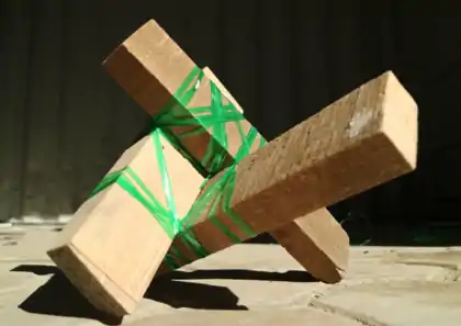 Strips of plastic from a soda bottle can be used to lash poles together, and if you hit the lashing with a heat gun, then it shrinks a little bit, making for a super tight hold.